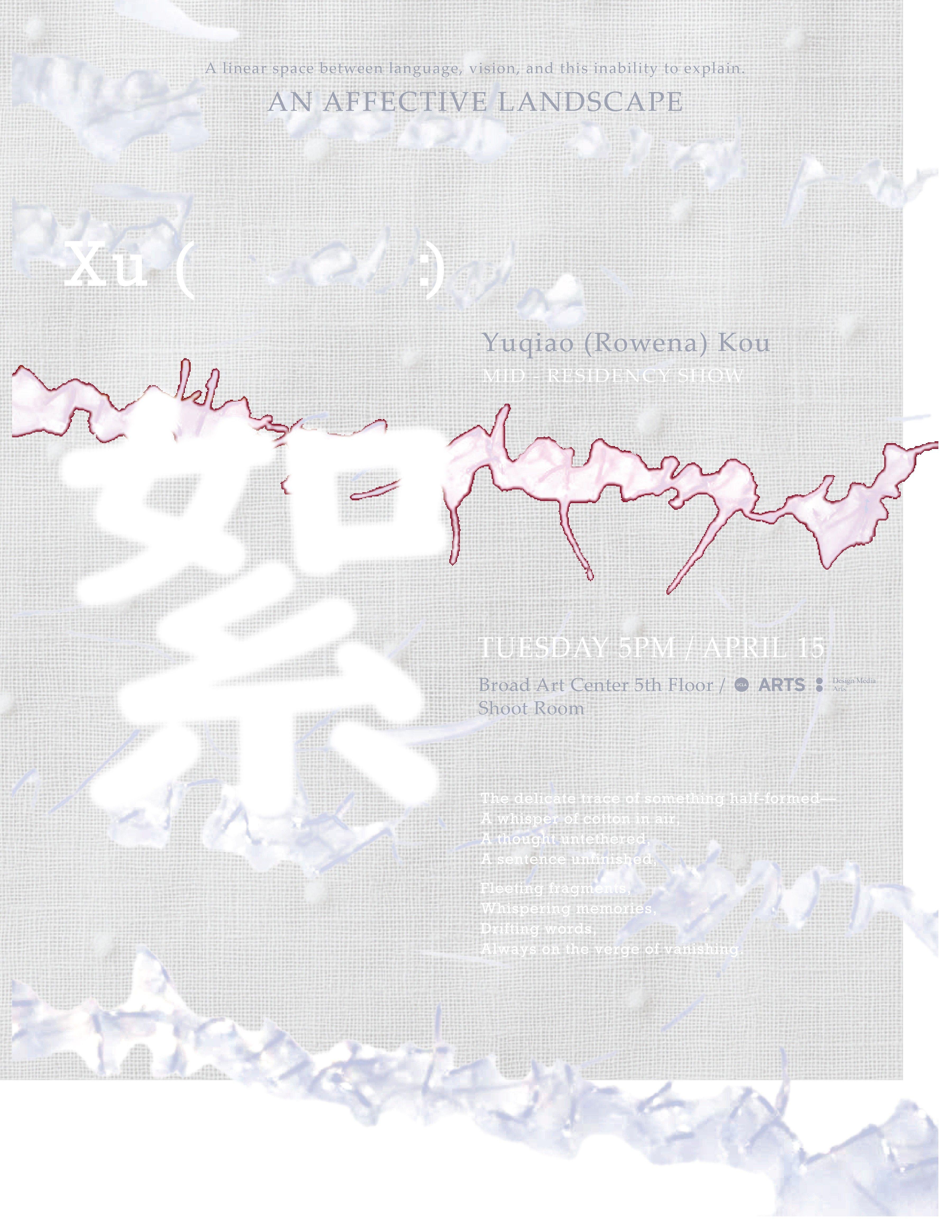 Xu weaves language, vision, and objectified poetry into an affective landscape. Silence—affection, mediating between language and vision—speaks through its very inability to speak. Dwelling in the righteousness of ambiguity, speaking the language of poetry.