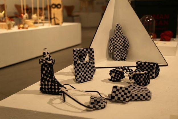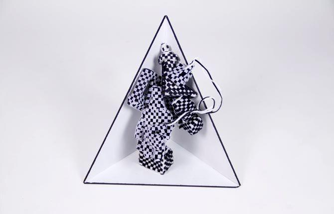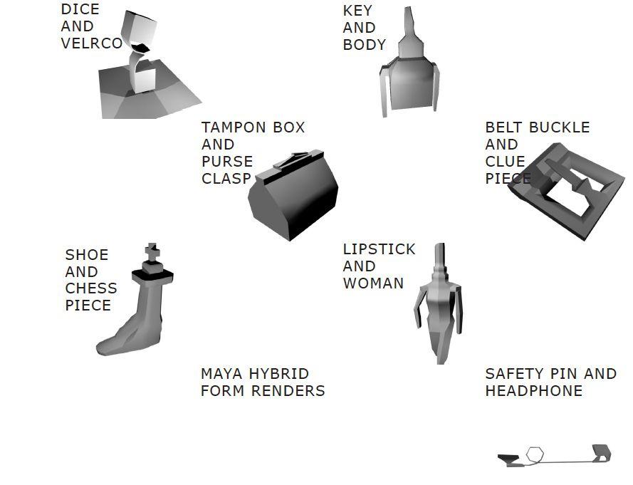 Previous / Next image () A project for Form (Spring 2013) with Noa Kaplan. All objects are hybrids of 3 collections: - Clothing Fasteners - Board Game Pieces - Things in my Backpack They were modeled on Maya, printed and folded using Papakura, and then skinned in duct tape and checkers of black and white velcro. The cabinet was laser cut, glued together, and painted with spray paint and acrylic. Shown in the UCLA Undergraduate Show, "Recess."