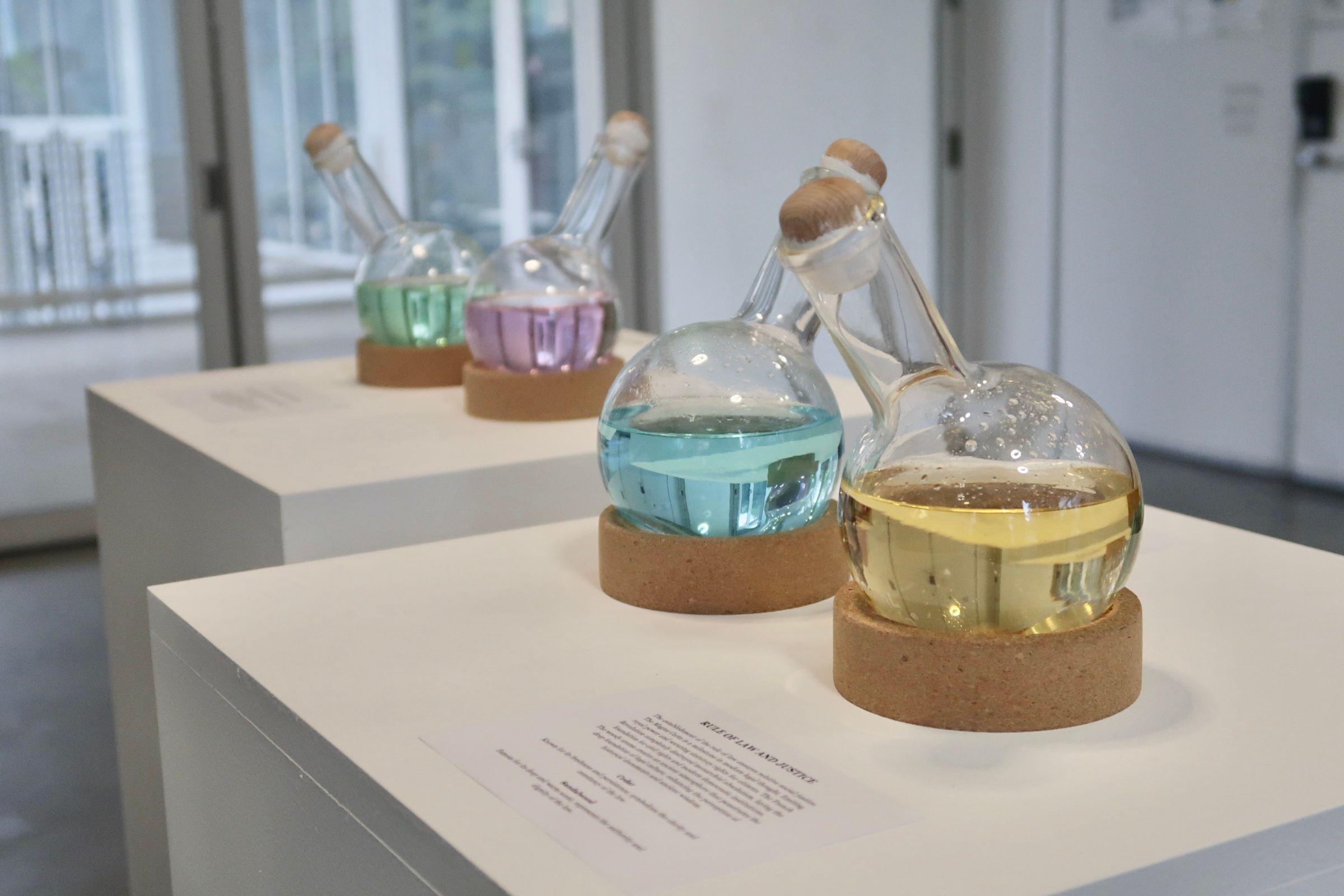"Scents of Time" invites you on an olfactory journey through pivotal moments in human history. This installation uses the medium of scent to bridge the past and the present, allowing you to experience the profound transformations of each era through a series of distinct aromas presented in five different vessels. Reflecting on the diverse impacts of these events and promoting a deeper understanding of their enduring influence on our world.