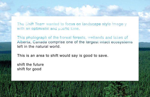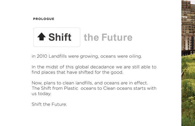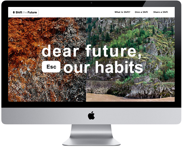 Shift The Future Campaign | 2012 Brand, Printed Book, Posters, and Interactive Web Banner In collaboration with Rebecca Mendez, Peter Lunenfeld and Nancy Tsang we developed a brand campaign to address the Climate Crisis of 2012. The Brand Consisted of: 1 Printable Poster size Booklet 1 Website with Information of the Climate Crisis (courtesy of Nancy Tsang) 1 Physical Lasercut Sign