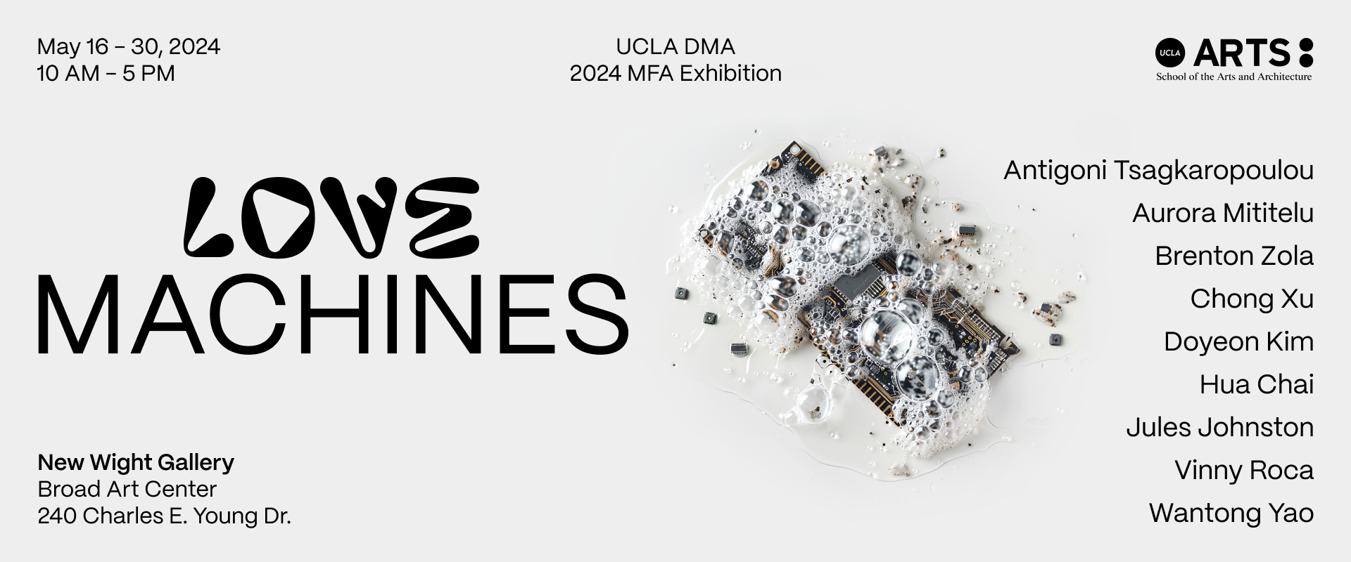 LOVE MACHINES opens May 16th and will run until May 30th with limited gallery hours. Please check the @ucla_dma Instagram for updated gallery hours.