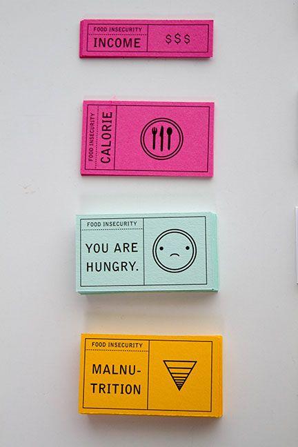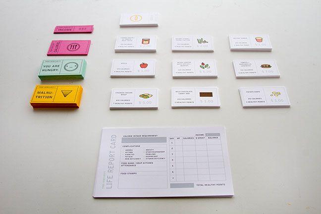 Food insecurity is closer to home than we think. Food Insecurity is a game in response to hunger in America. In the game, players each take the role of a low income individual. Their task is to purchase food (in the form of cards) every day (each round) to meet their calorie intake requirement. The player with the most healthy points at the end of the game is the winner. Game Rules < > (1 of 1)