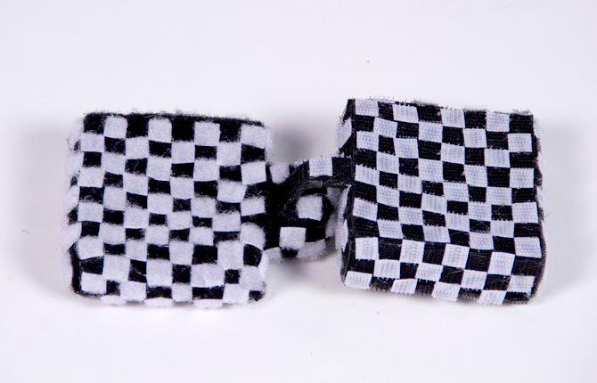 Previous / Next image () A project for Form (Spring 2013) with Noa Kaplan. All objects are hybrids of 3 collections: - Clothing Fasteners - Board Game Pieces - Things in my Backpack They were modeled on Maya, printed and folded using Papakura, and then skinned in duct tape and checkers of black and white velcro. The cabinet was laser cut, glued together, and painted with spray paint and acrylic. Shown in the UCLA Undergraduate Show, "Recess."