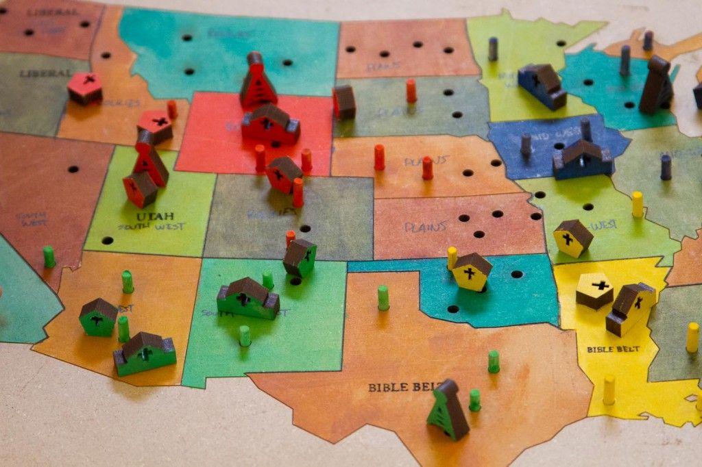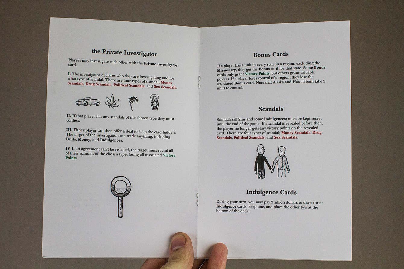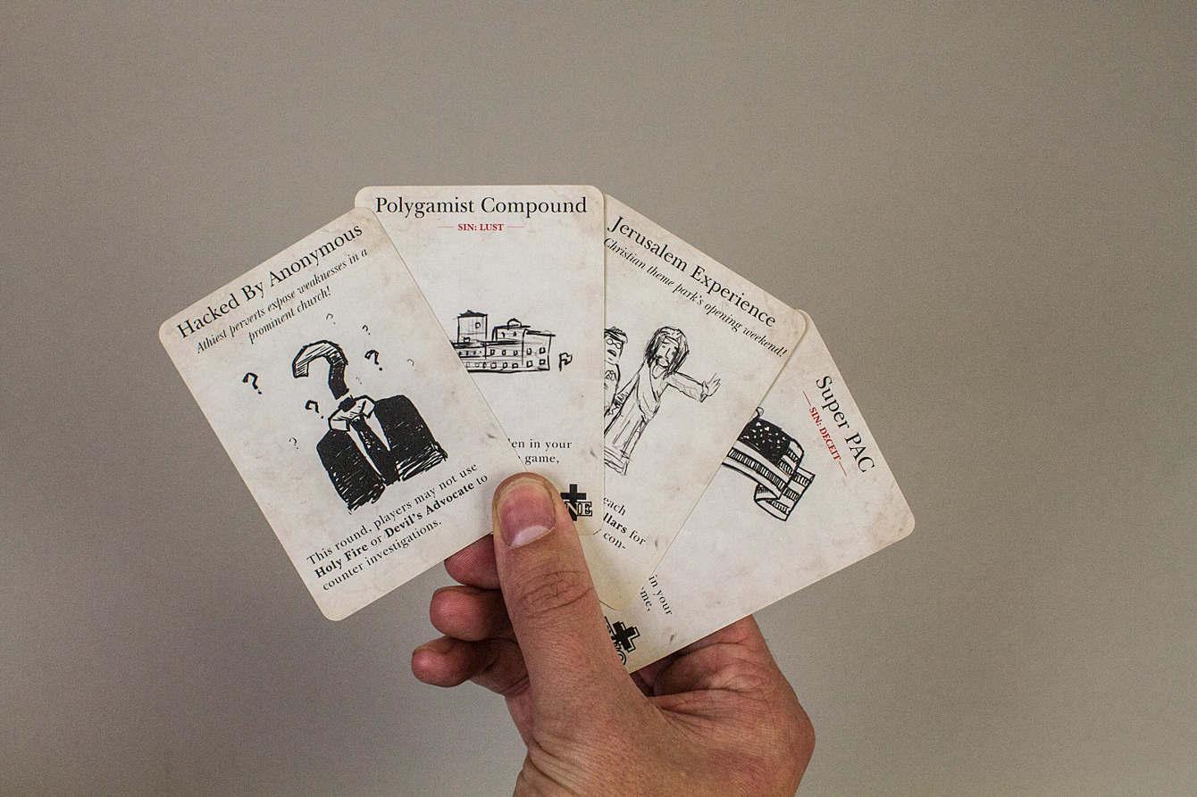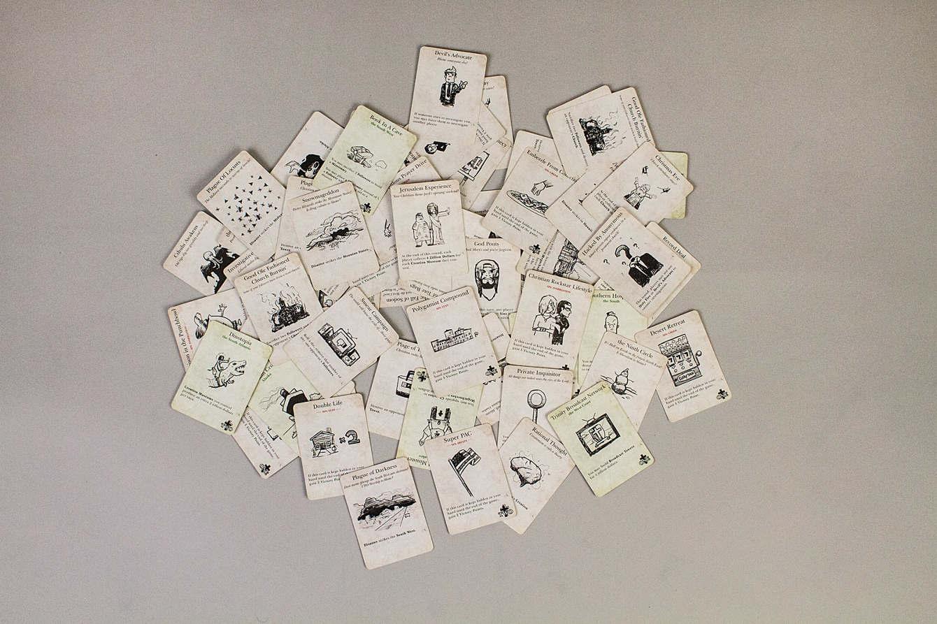 Propheteers (2013) multiplayer strategy board game Previous / Next image Propheteers is a competitive board game for four players where each player becomes the face of an evangelical empire of mega churches, radio talk shows, and creation museums. The player who manages to collect the most sins (including everything from prostitutes to super PACs to cocaine) and keep them hidden until the final Act of God is the winner. as seen at: GAME GAZER - SWISSNEX SF, SAN FRANCISCO CA - 2013 AMBER FESTIVAL - ISTANBUL, TURKEY - 2013 RECESS - NEW WIGHT GALLERY, LOS ANGELES, CA - 2012