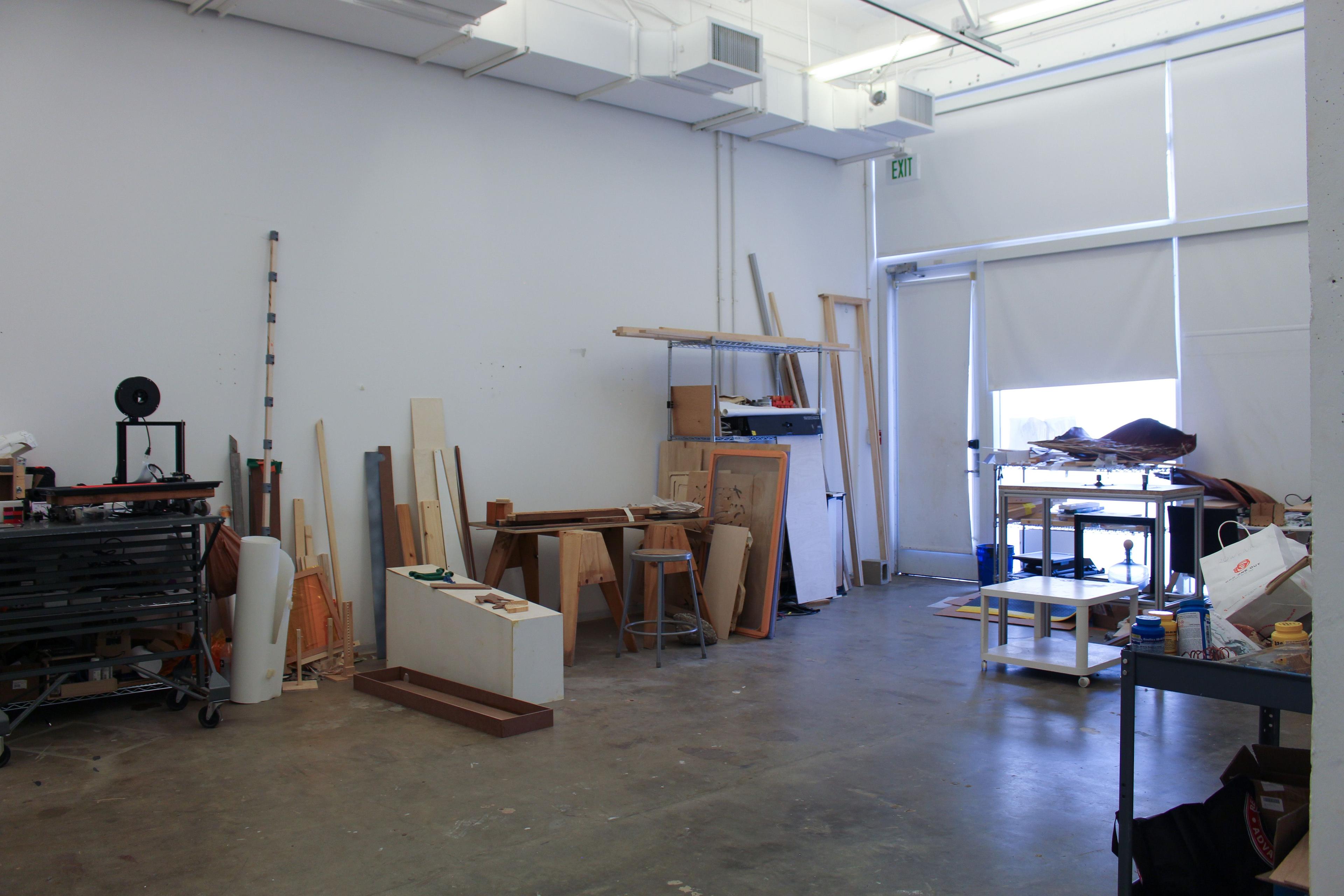 The fabrication and electronics labs provide students and faculty with physical computing and fabrication resources. Located in room 2250 on the second floor of Broad Art Center, the fabrication lab facilitates physical construction across several different media, including wood, metal, and plastics. In addition to traditional manual and powered fabrication equipment, such as table saws, drills, routers, and sanders, the fabrication lab features a growing collection of computer-aided milling and rapid- prototyping facilities. The adjacent electronics lab supports research and development for projects utilizing physical computing with the goal to move away from standard computer interfaces such as monitors and keyboards. The lab provides electronics fabrication resources, including soldering equipment, power supplies, multimeters, oscilloscopes, basic components, and micro controllers. Additionally, the electronics lab functions as a communal site for sharing and documenting physical computing experiments.